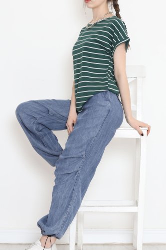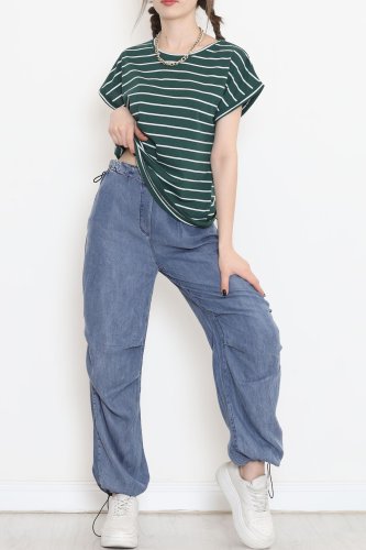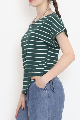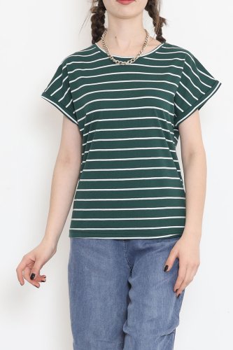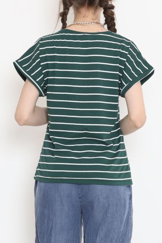 Süprem Çizgili Dublekol Tişört Zümrüt