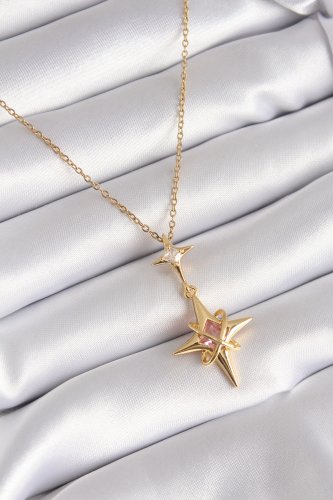 316L Çelik Gold Renk Zirkon Taşlı Kutup Yıldızı Model Kadın Kolye
