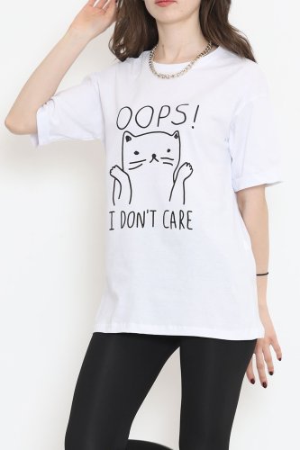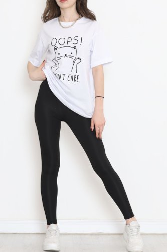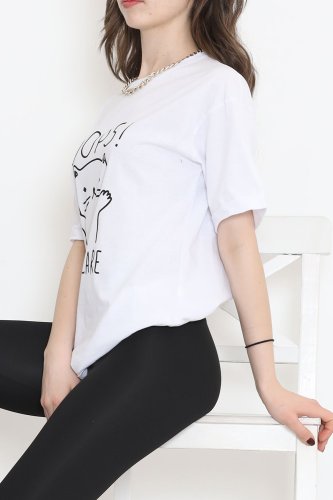 Baskılı Duble Kol Tişört Beyaz