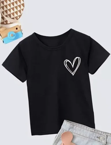 Kız Çocuk Bisiklet Yaka Baskılı T-Shirt-Siyah
