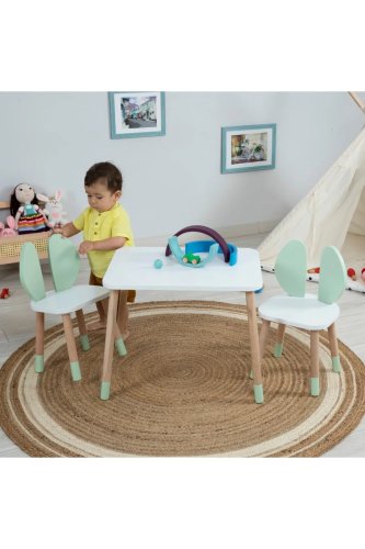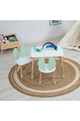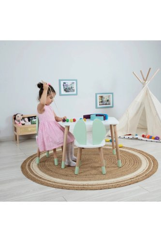 Ahşap Montessori Aktivite Masası Sandalyesi Bunny Masa Sandalye