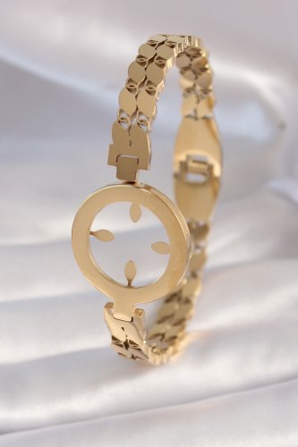 316L Çelik Gold Renk Arpa Kesim Çeyrek Altın Takılabilir Model Kadın Kelepçe