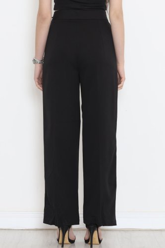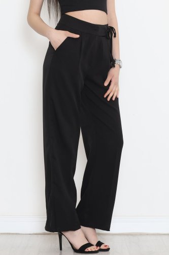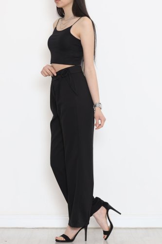 Bel Bağcıklı Palazzo Pantolon Siyah