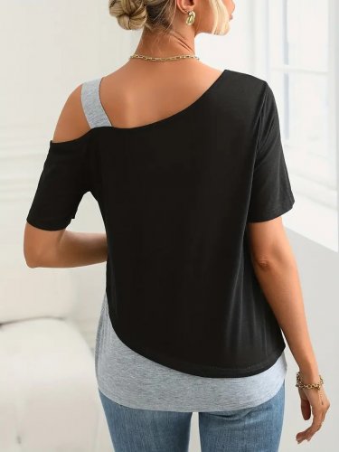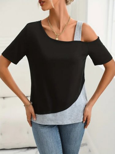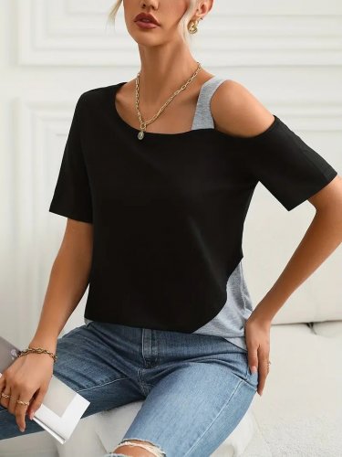 Kadın kısa kollu tek omuzu açık askı detaylı viskon bluz