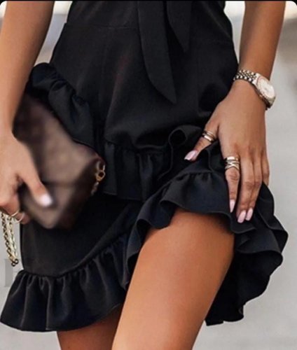 Kadın sandy kumaş toka aksesuarlı fiyonk ve fırfır detaylı mini elbise