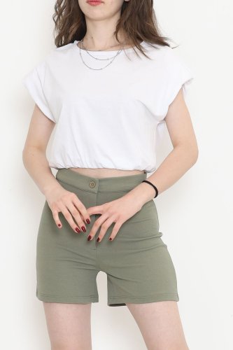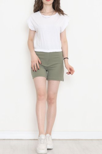 Beli Lastikli Crop Bluz Beyaz