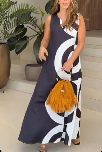 Kadın micro kumaş desenli cep detaylı maxi boy elbise
