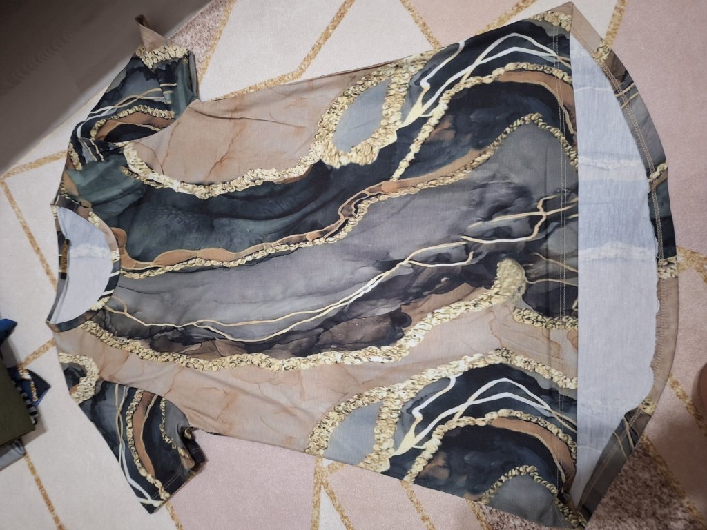 Kadın kısa kollu bisiklet yaka desenli süprem bluz