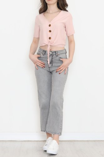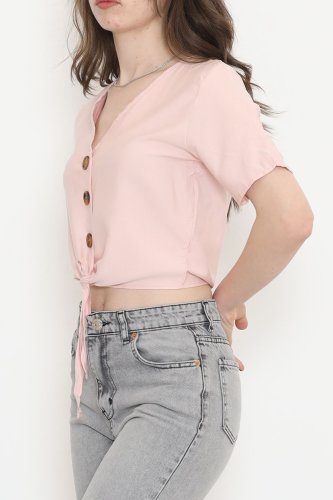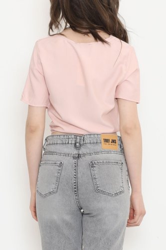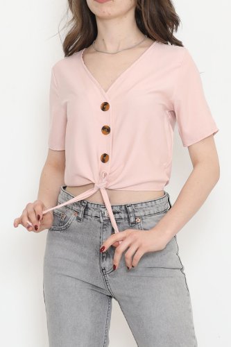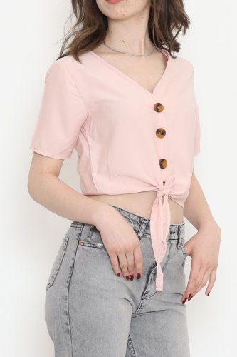 Bel Bağlamalı Bluz Pudra