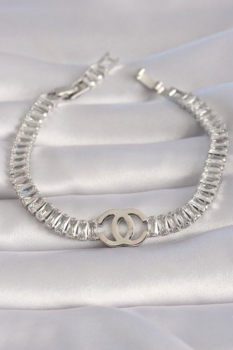 Pirinç Gümüş Renk Zirkon Taşlı Su Yolu Model VIP Seri Kadın Bileklik