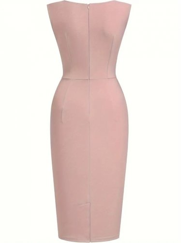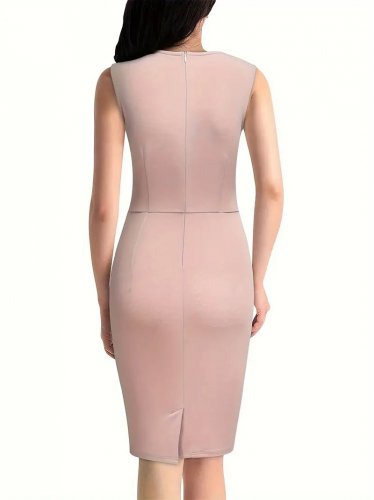 Kadın sıfır kol eteği pile detaylı ithal krep elbise