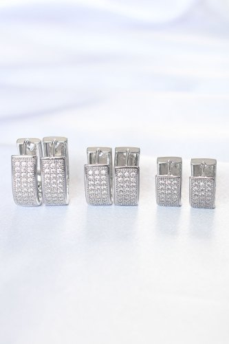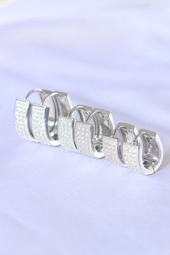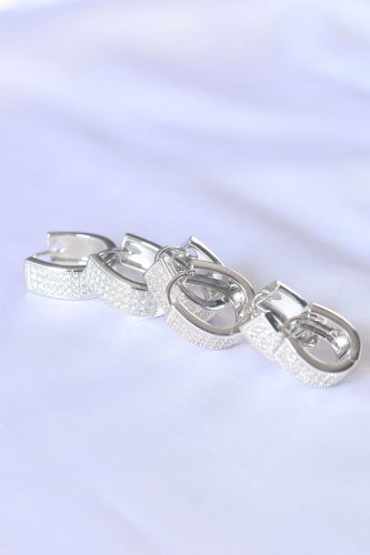 Pirinç Taşlı Gümüş Renk Oval Çoklu Küpe