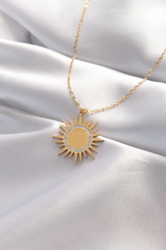 316L Çelik Taşlı Gold Renk Güneş Kolye