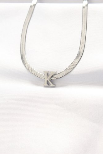 316L Çelik K Harfli Silver Renk İtalyan Zincirli Kolye
