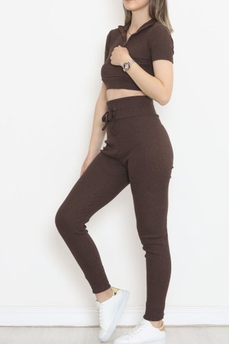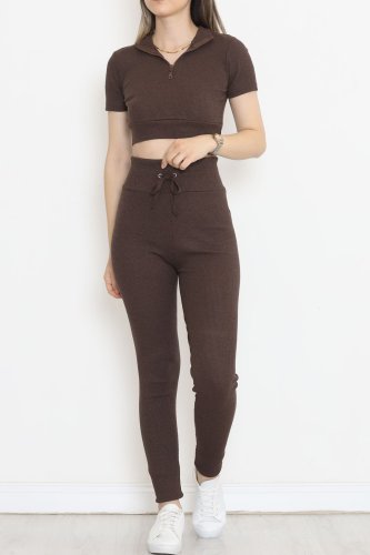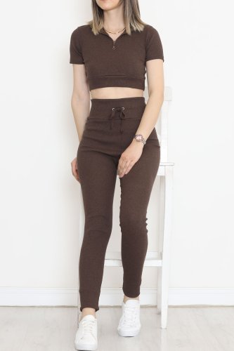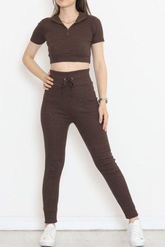Kaşkorse Fermuarlı Kısakol Takım Kahve