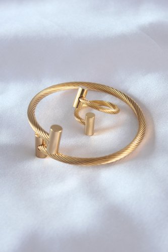 Çelik Gold Renk Burgu Model Erkek Bileklik Yüzük Seti