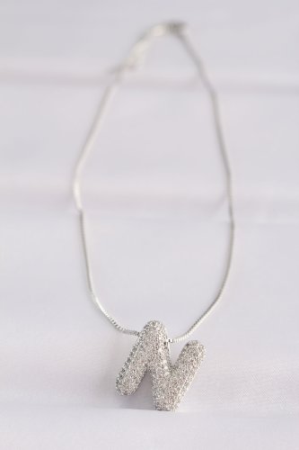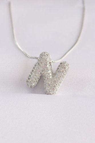 316L Çelik Zincirli Zirkon Taşlı N Harfli Silver Renk Bubble Kolye