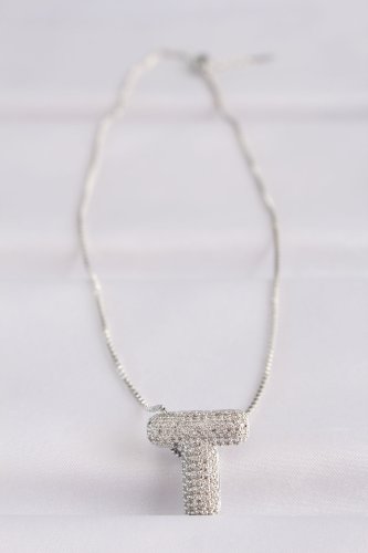 316L Çelik Zincirli Zirkon Taşlı T Harfli Silver Renk Bubble Kolye