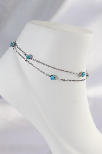 316L Çelik Gümüş Renk Minimal Mavi Taş Tasarımlı Halhal