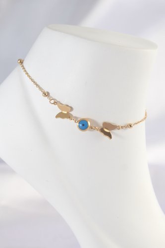 316L Çelik Gold Renk Nazar Boncuk Detay Kelebek Halhal