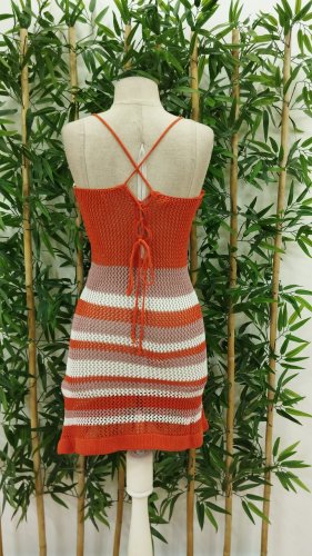 Kadın sırtı bağlamalı pencere detay askılı triko elbise