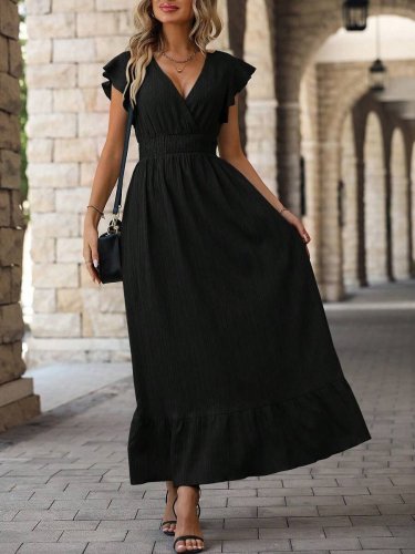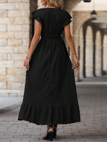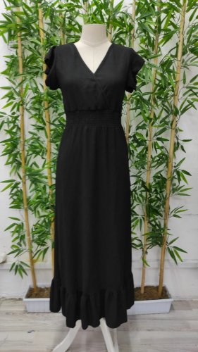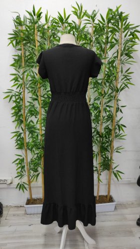 Kadın kol ve etek ucu volanlı beli gipeli bürümcük tam boy elbise