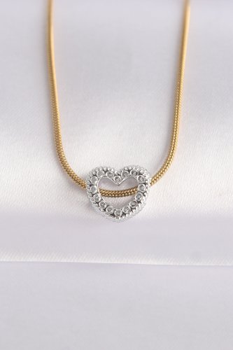 316L Çelik Zincir Altın Renk Zincirli Gümüş Renk Kalp Tasarımlı Kolye