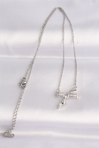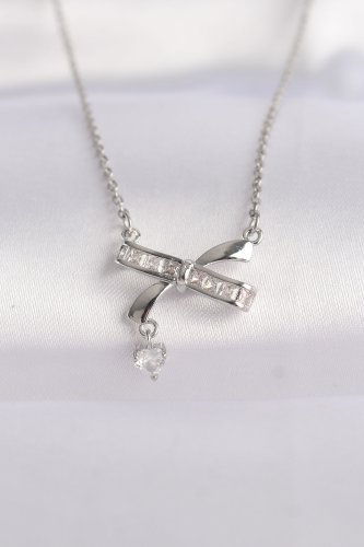 316L Çelik Zincir Gümüş Renk Zirkon Taşlı Kalp Detay Fiyonk Kolye