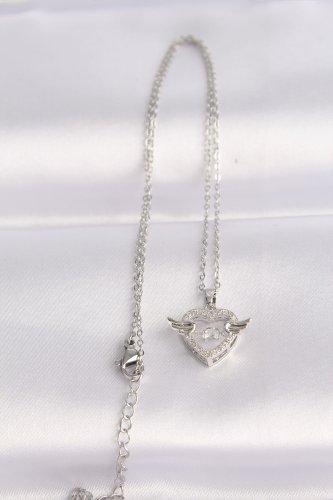 316L Çelik Zincir Gümüş Renk Zirkon Taşlı Kanatlı Kalp Kolye