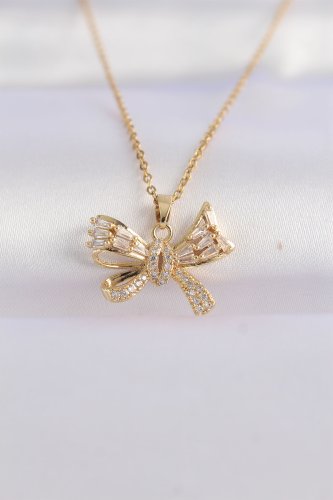316L Çelik Zincir Altın Renk Zirkon Taşlı Fiyonk Kolye