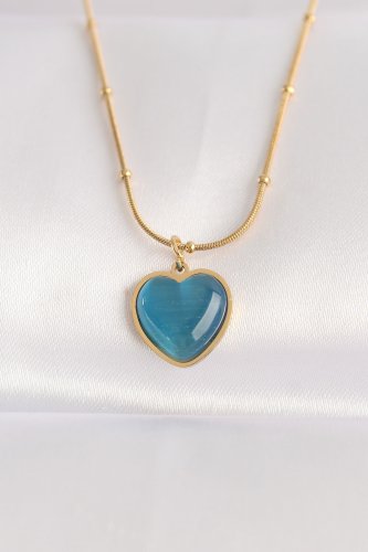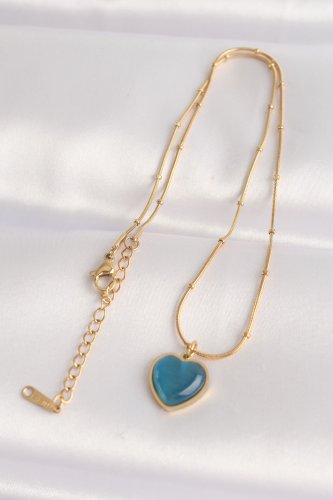 316L Çelik Zincir Altın Renk Mavi Sedefli Kalp Figürlü Kolye