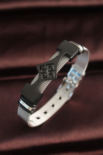 316L Çelik Siyah Motifli Ayarlanabilir Hasır Kordonlu Bileklik