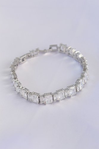 Vip Seri Pirinç Zirkon Taşlı Gümüş Renk Baget Su Yolu Model Bileklik