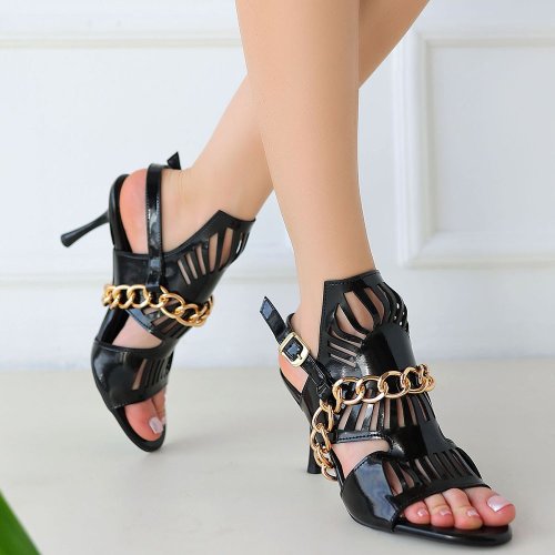 Lidya Siyah Rugan Topuklu Ayakkabı