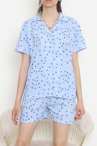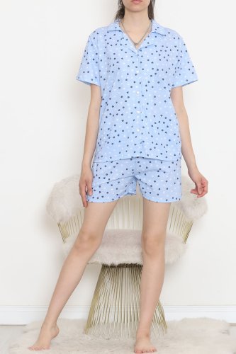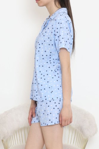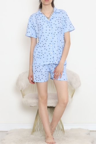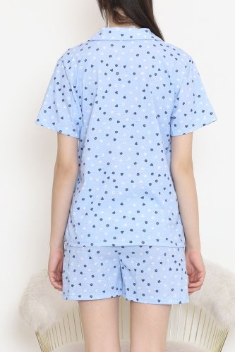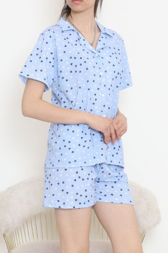 Önden Düğmeli Şortlu Takım Mavibeyaz