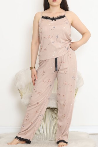 İp Askılı Battal Pijama Takımı Açıkpembe