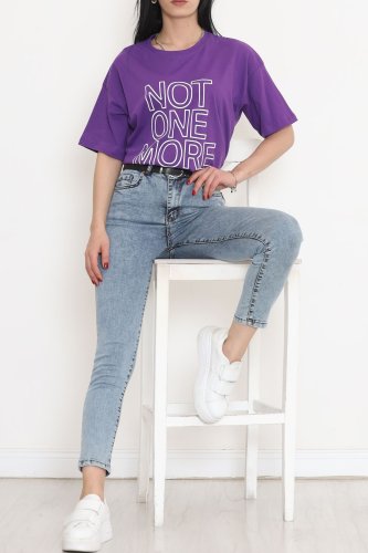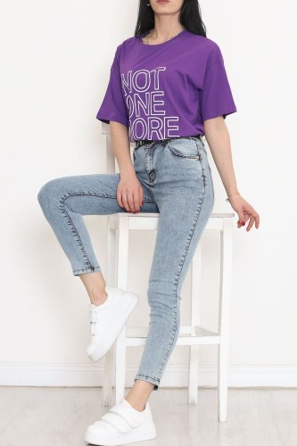 Baskılı Oversize Tişört Mor