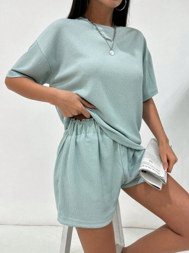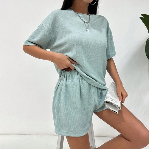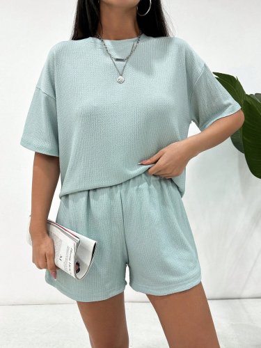 Kadın açık gri gipeli suprem tişört ve astarlı şort takım