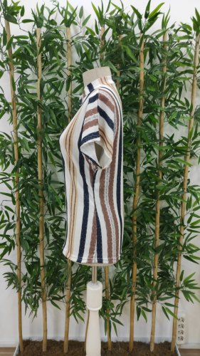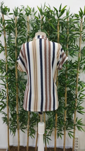 Yaka kısmı yüksek, benim gibi boynu kısa olanlara olmuyor, etek kısmı düz kesilmiş, çan kesim veya yanları yırtmaçlı güzel olurdu, biz Türk kadınları kısa ve kalçalıyız, maalesef olmadı. Bir beden büyük alınmalı.
