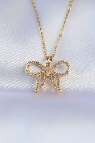 316L Çelik Zincir Gold Renk Zirkon Taşlı Fiyonk Kolye