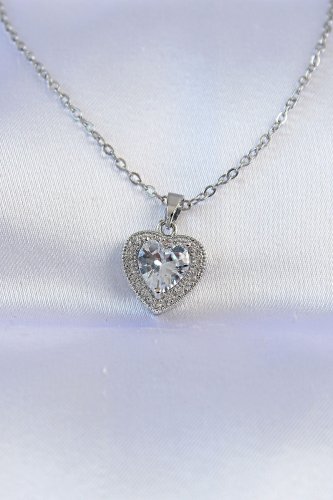 316L Çelik Zincir Gümüş Renk Zirkon Taşlı Charm Kalp Kolye