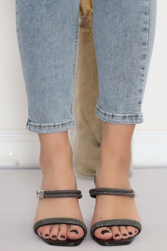 Cm Kristal Topuklu Terlik Siyahrugan