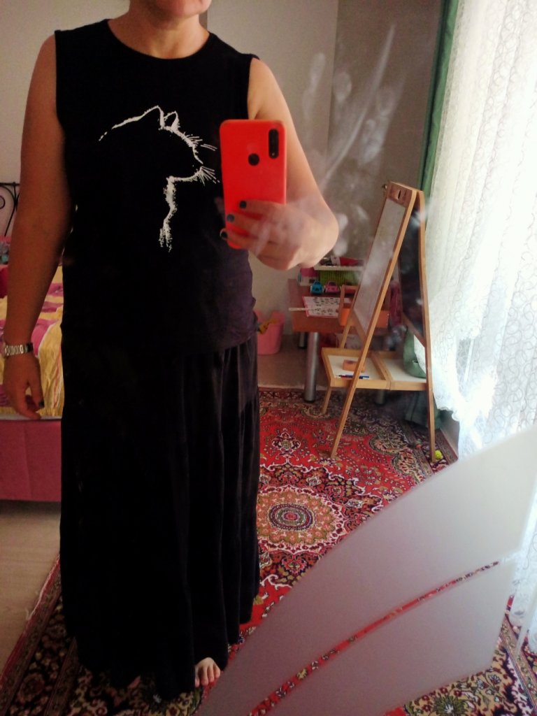 Kadın kolsuz kedi silüeti baskılı viskon bluz