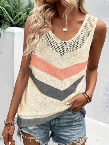 Kadın yakası ajurlu v şerit detaylı sıfır kol triko bluz