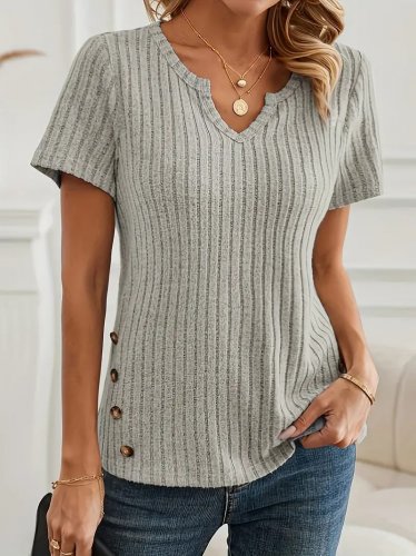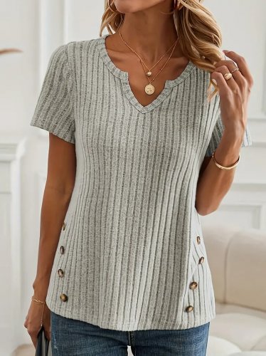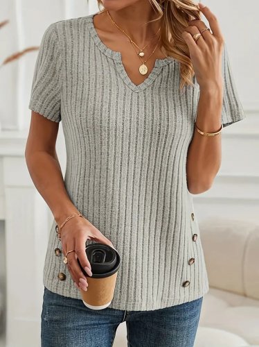 Kadın kısa kollu v yaka yanlardan düğme detay kalın fitilli kaşkorse bluz