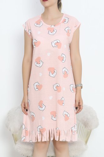 Baskılı Rotasyon Püsküllü Elbise Pudrapembe