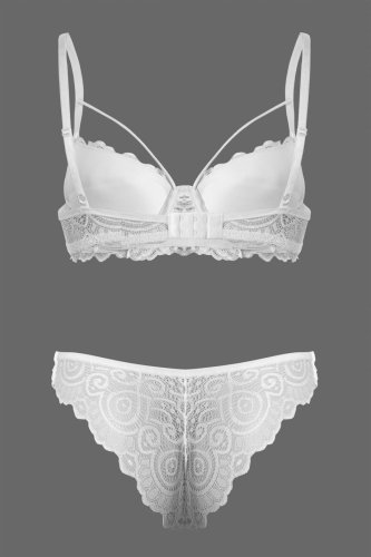 Ekru Dantelli Tek İp Detaylı Şık Sütyen Takım 19014