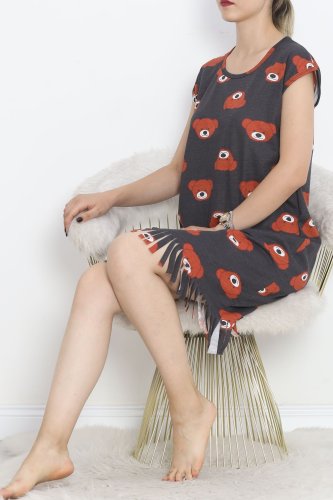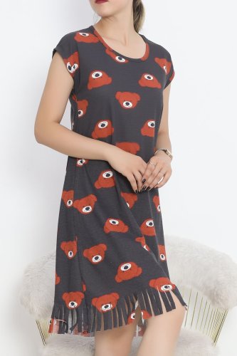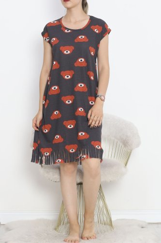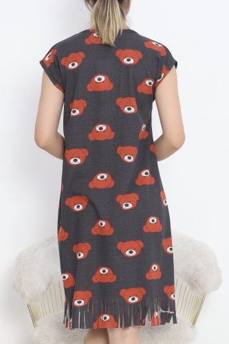 Baskılı Rotasyon Püsküllü Elbise Füme