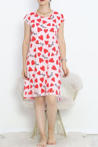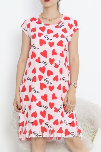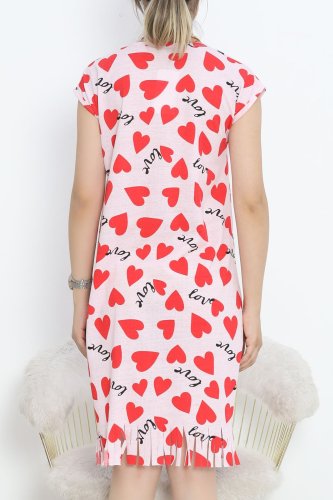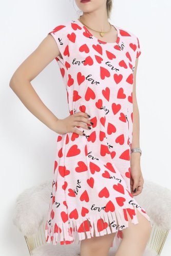 Baskılı Rotasyon Püsküllü Elbise Pembekırmızı