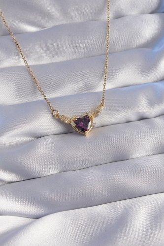 316L Çelik Zincir Gold Renk Mor Zirkon Taşlı Kanatlı Kalp Kolye